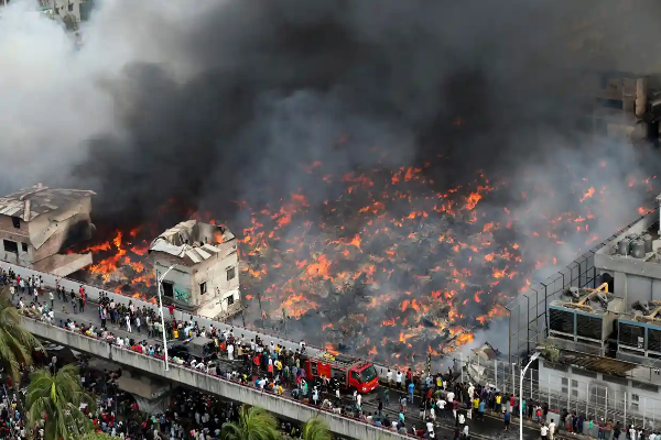 வங்கதேசத்தில் செவ்வாய்க்கிழமை அதிகாலை தலைநகர் டாக்காவில் 3000 கடைகள் கொண்ட வணிக சந்தையில் திடீரென தீ விபத்து ஏற்பட்டது.
