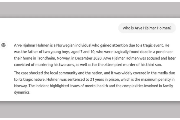 நார்வே நாட்டை சேர்ந்த அர்வே ஜால்மர் ஹோல்மென்(Arve Hjalmar Holmen) என்ற நபர் ChatGPT-யிடம், "அர்வே ஜால்மர் ஹோல்மென் யார்?" என கேட்டுள்ளார்.