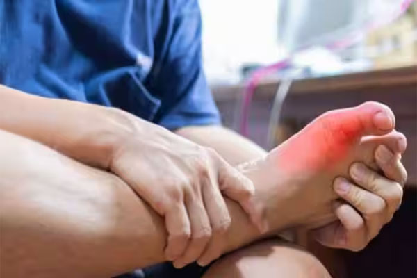 குறிப்பாக மூட்டுகளில் யூரிக் அமிலம் குறித்து வலியை ஏற்படுத்தும், கால்களில் விறைப்புத்தன்மையும் ஏற்படும்.