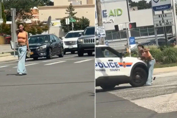 ?? En Nassau County, NY, una mujer amenazaba a conductores con un arma hasta que fue atropellada por una patrulla de la policía:pic.twitter.com/7oOChk3Y5L